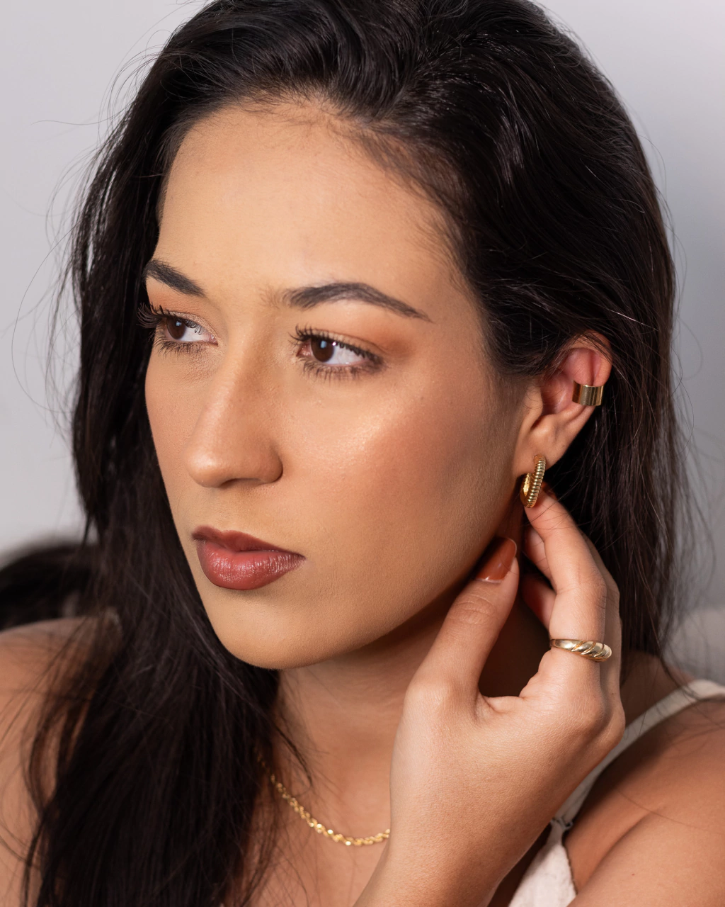 Dourado: Fica lindo em pessoas com subtom de pele quente. Paletas de Outono Suave, Outono Quente e Outono Escuro, Primavera Brilhante, Primavera Quente, Primavera Clara e Inverno Brilhante.